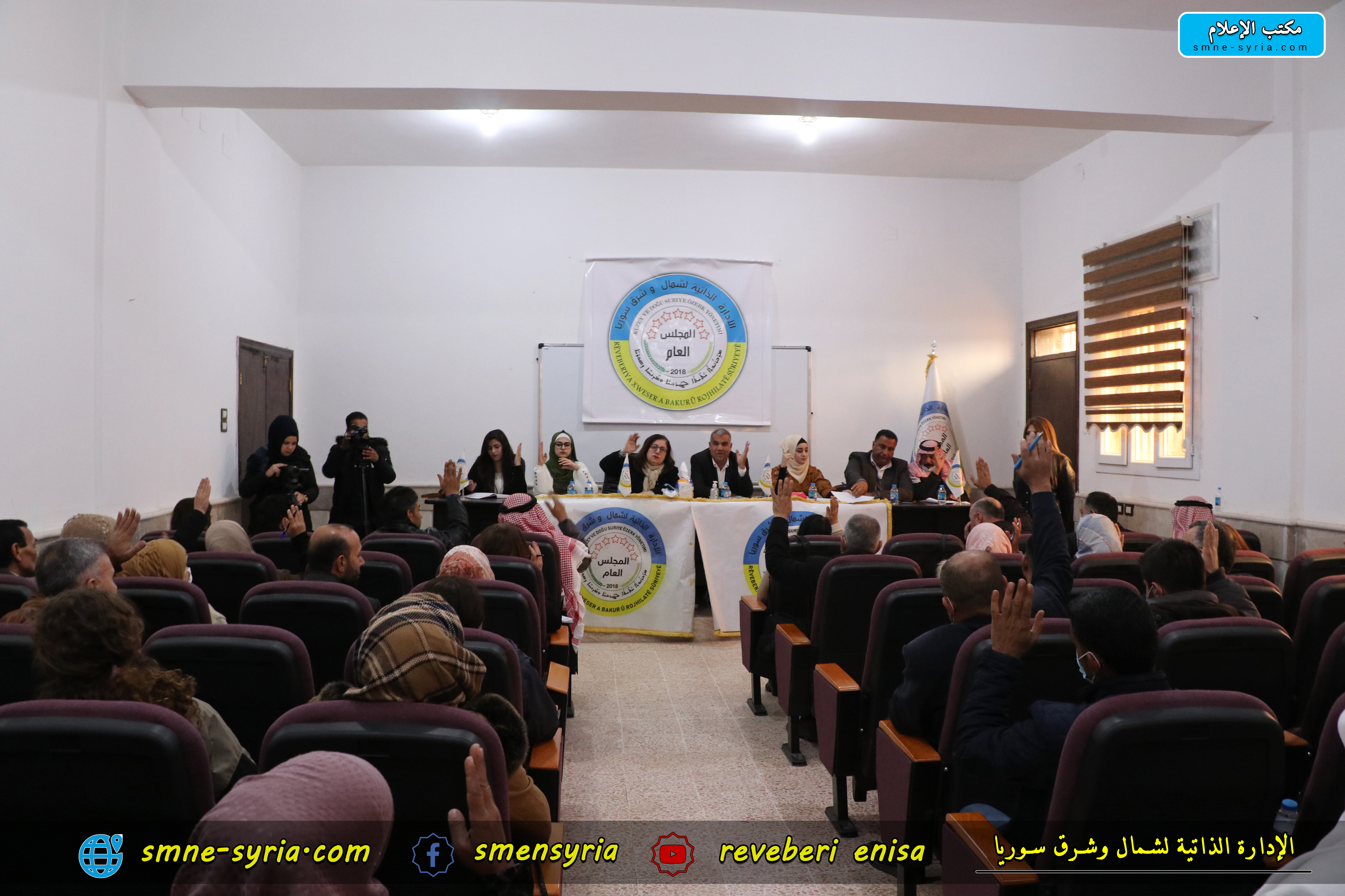 صادق المجلس العام في الإدارة الذاتية لشمال وشرق سوريا اليوم الأحد خلال جلسته رقم 32 وبحضور أغلبية أعضاء المجلس العام في الإدارة الذاتية لشمال وشرق سوريا على مقترح المجلس التنفيذي ويعدل البند1, 2 الموجود في الفقرة 4 من المادة4 في ميثاق الإدارة الذاتية لشمال وشرق سوريا.