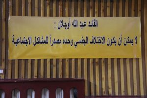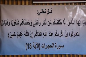 وعلقت في قاعة المؤتمر آيات قرآنية تدعو إلى المساواة بين الجنسين.