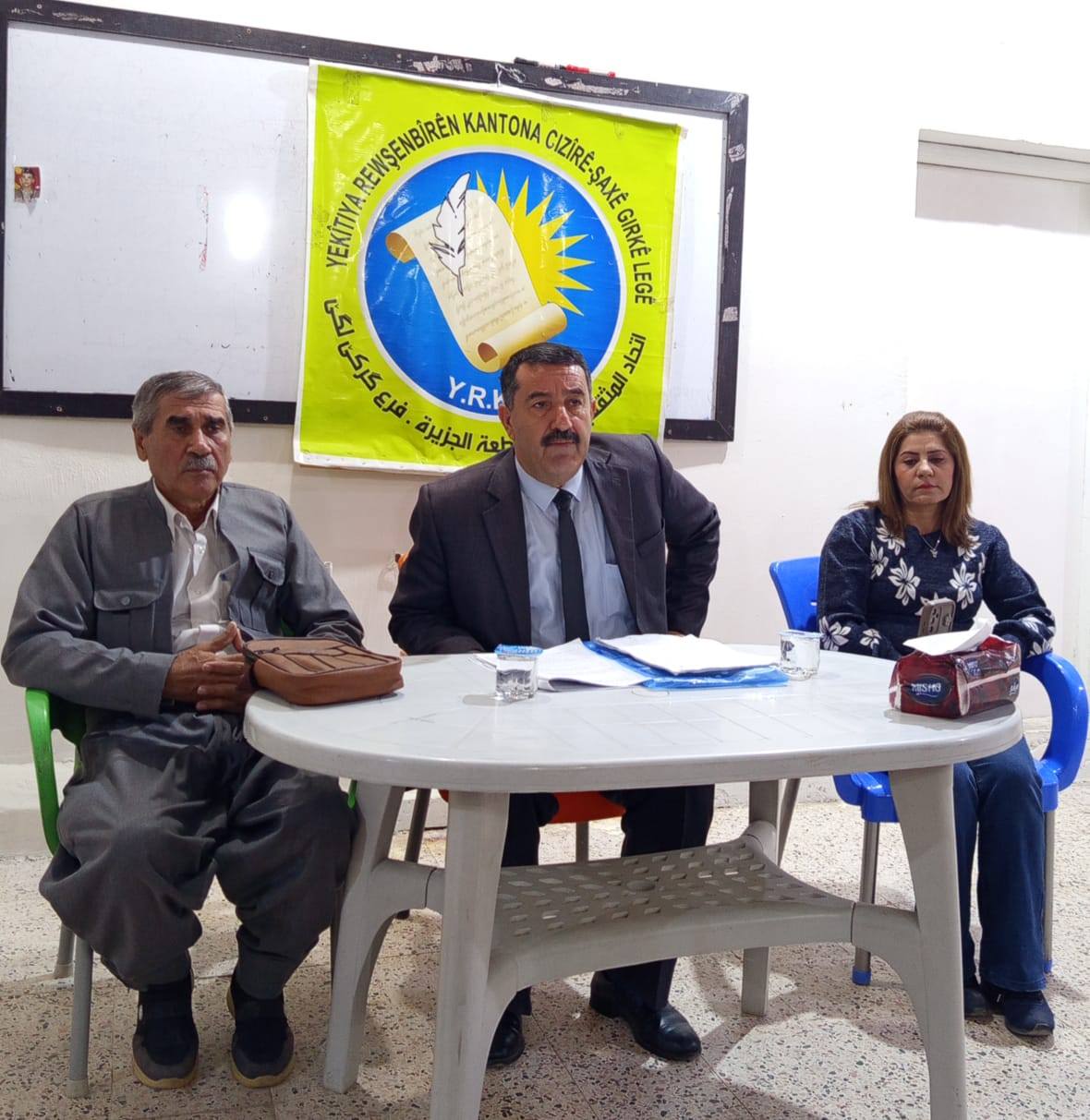 وألقى الرئيس المشترك لمجلس الشعوب الديمقراطي في إقليم شمال وشرق سوريا، الأستاذ كنعان بركات، محاضرة تناول فيها ماهية المجلس ودوره ومهامه، وذلك في مقر حزب الاتحاد الديمقراطي بمدينة رميلان.