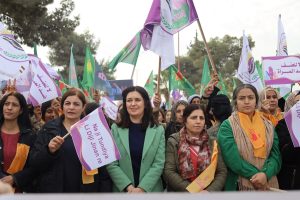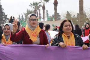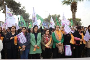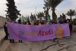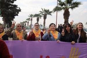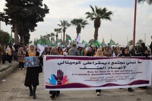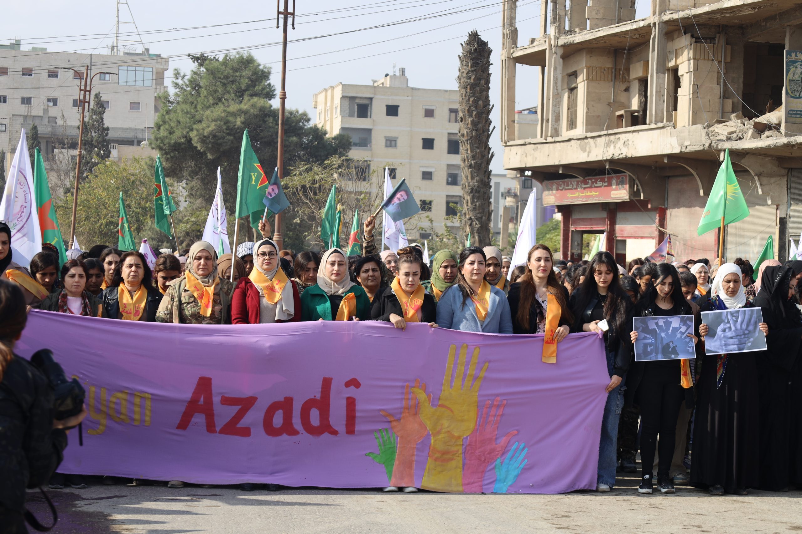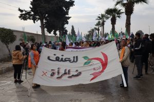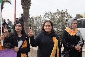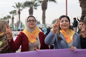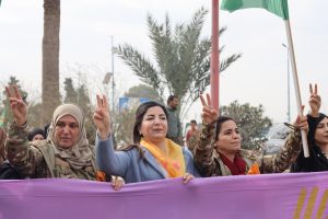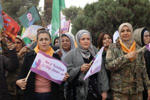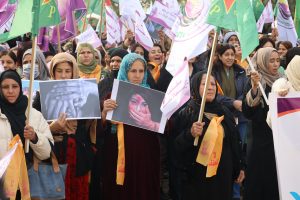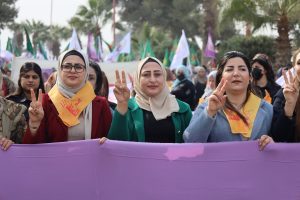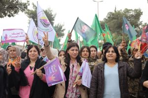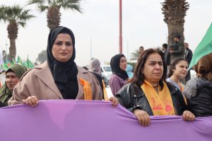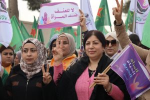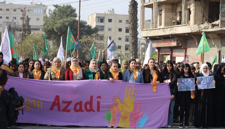 وفد من منسقية المرأة في الإدارة الذاتية الديمقراطية يشارك في مسيرة مناهضة العنف ضد المرأة في الرقة