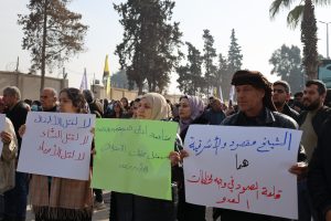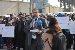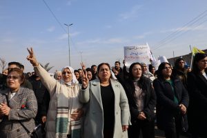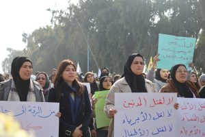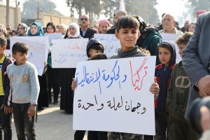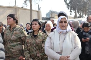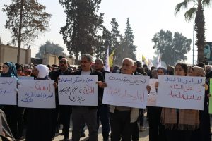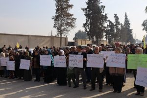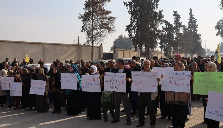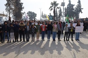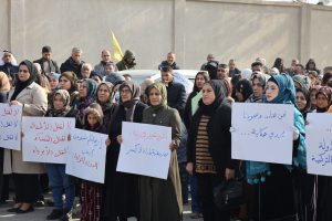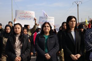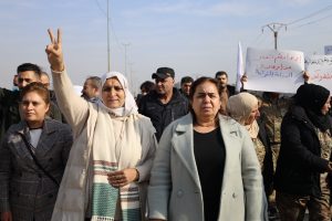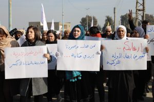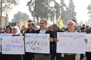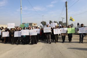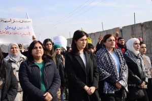 وفد من منسقية المرأة يشارك في مسيرة حاشدة بالرقة تنديداً بالقصف على الأشرفية والشيخ مقصود