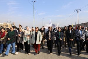 وانطلقت المسيرة من كافتيريا مشوار وصولاً إلى دوار البانوراما في مقاطعة الرقة، بمشاركة الدوائر والهيئات والمكاتب التابعة للإدارة الذاتية، إلى جانب عدد من أهالي مقاطعة الرقة، والحركات والتنظيمات النسوية، والأحزاب السياسية.