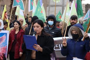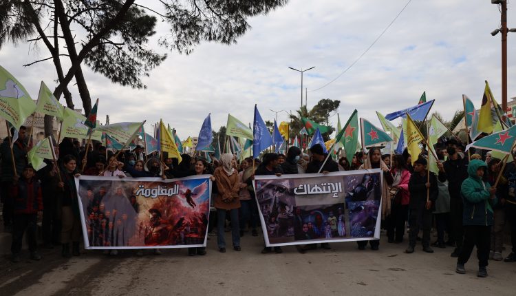 شارك وفد من الإدارة الذاتية الديمقراطية لإقليم شمال وشرق سوريا، اليوم، في مسيرة جماهيرية حاشدة شهدتها مقاطعة الرقة، تنديداً بالقصف والمجازر والانتهاكات التي تطال حيي الشيخ مقصود والأشرفية.