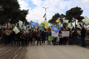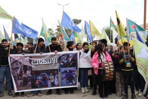 وانطلقت المسيرة من أمام المشفى العسكري في المقاطعة، وصولاً إلى دوار المرأة الحرة، حيث ردد المشاركون شعارات تدين المجازر والانتهاكات المرتكبة بحق المدنيين في الشيخ مقصود والأشرفية، وتطالب بوقفها فوراً.