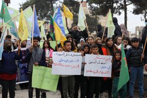 وفد من الإدارة الذاتية يشارك في مسيرة جماهيرية حاشدة بالرقة تنديداً بمجازر الشيخ مقصود والأشرفية